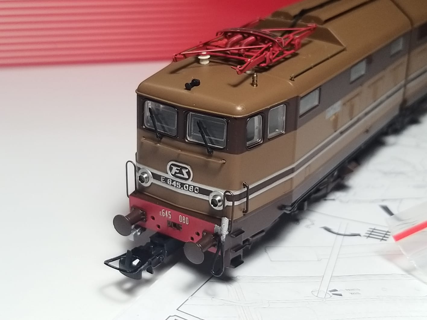 1-Locomotore Hornby Rivarossi Art HRS 2590 E645 080 nella colorazione Castano/Isabella Modanato.