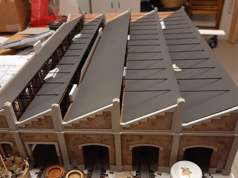 mi hanno spinto, vista l’indecisione mia iniziale, a riprodurre le tegole anche sulle falde del tetto dell’officina.