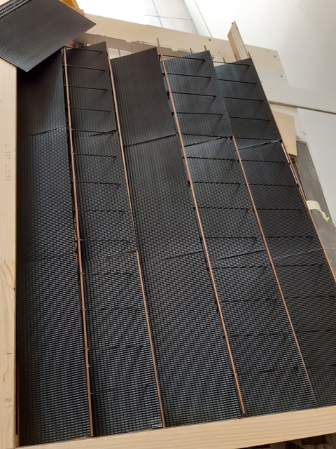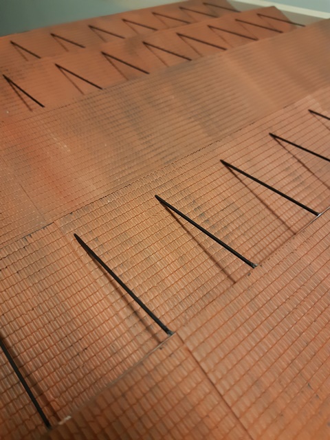 Tagliate di misura e, visto l’esiguo spessore, incollate direttamente sulle falde già realizzate,