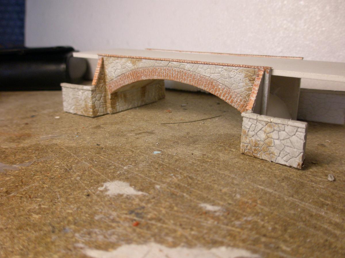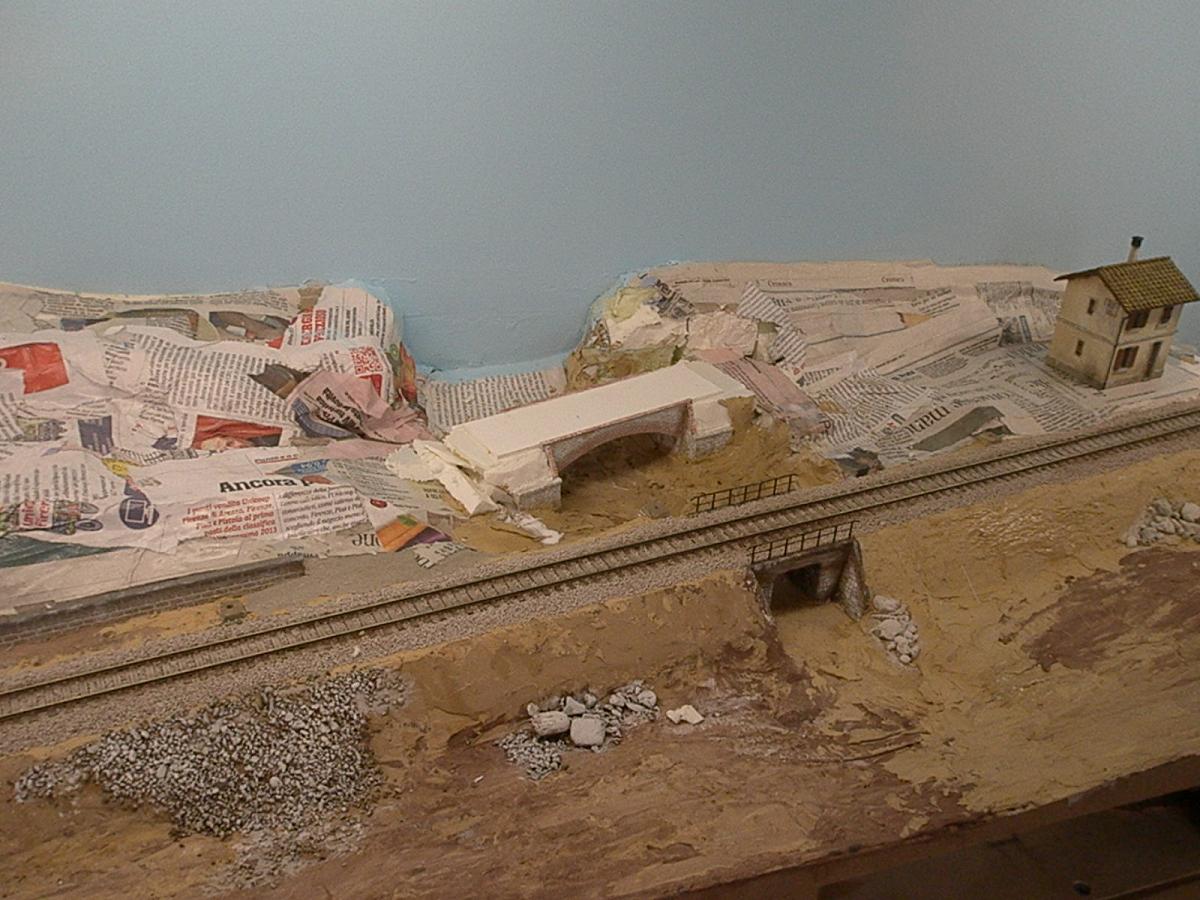Con l'arrivo sul diorama/plastico del nuovo ponte, a mio parere, viene meno il relativo corretto dimensionamento del ponte ferroviario rispetto al nuovo venuto, in quanto il ponte ferroviario, essendo collocato più a valle, anche se di pochi metri, dovrebbe quanto meno avere la stessa "luce" o meglio di più, del ponte stradale posto a monte, altrimenti costituirebbe una strozzatura pericolosa in caso di piena.