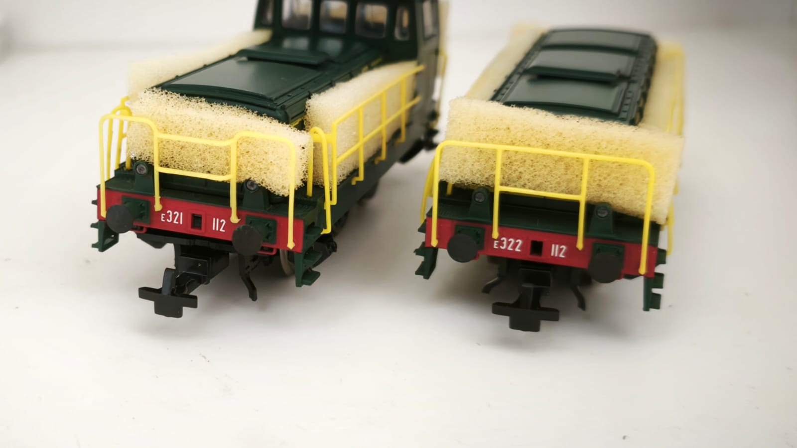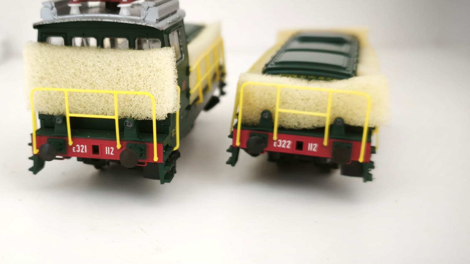 2- RIVAROSSI Art 1473 E321 122 + E322 122 entrambe motorizzate ottime condizioni estetiche per entrambe quasi sempre in scatola aggiuntivi in busta ,foglietti illustrativi originali l'unita' con cabina E321 perfettamente funzionante in entrambi i sensi di marcia luci bianche presenti sul lato anteriore , NB SI SEGNALE CHE L'unita' E322 E' MARCIANTE IN ENTRAMBI I SENSI DI MARCIA, MA CAPTA TENSIONE SOLO DA DUE RUOTE DA RIVEDERE LE LAMELLE PRENDICORRENTE CHE SONO STATE RIMANEGGIATE , LUCI BIANCHE FUNZIONANTI IN ENTRAMBI IN ENTRAMBI I FRONTALI BARRA ACCOPPIATRICE PRESENTE MA INCOLLATA VICINO AD UN INNESTO, SPUGNA RIFATTA.